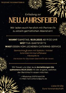 Die Vorstandschaft lädt alle Mitglieder der Abteilung zur Neujahrsfeier 2025 ein!