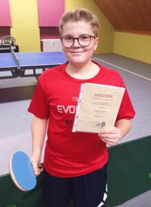 Hochkonzentriert mit sehr guten Aufschlägen, platzierten Topspins und sicheren Schupfbällen gewann Paul etwas überraschend, aber hochverdient dieses vorentscheidene Duell mit 3:1. Weitere Siege gegen Kohl und Popov folgten. Fast hätte ein unkonzentrierter Paul Gallner noch den Turniersieg verpasst, als er gegen den schwächer eingestuften Kugler aus Kümmersbruck bereits mit 1:2 Sätzen hinten lag. Paul musste sich nochmal sammeln und gewann die Sätze 3 und 4 mit 11:8 und 11:5 doch noch sicher.
