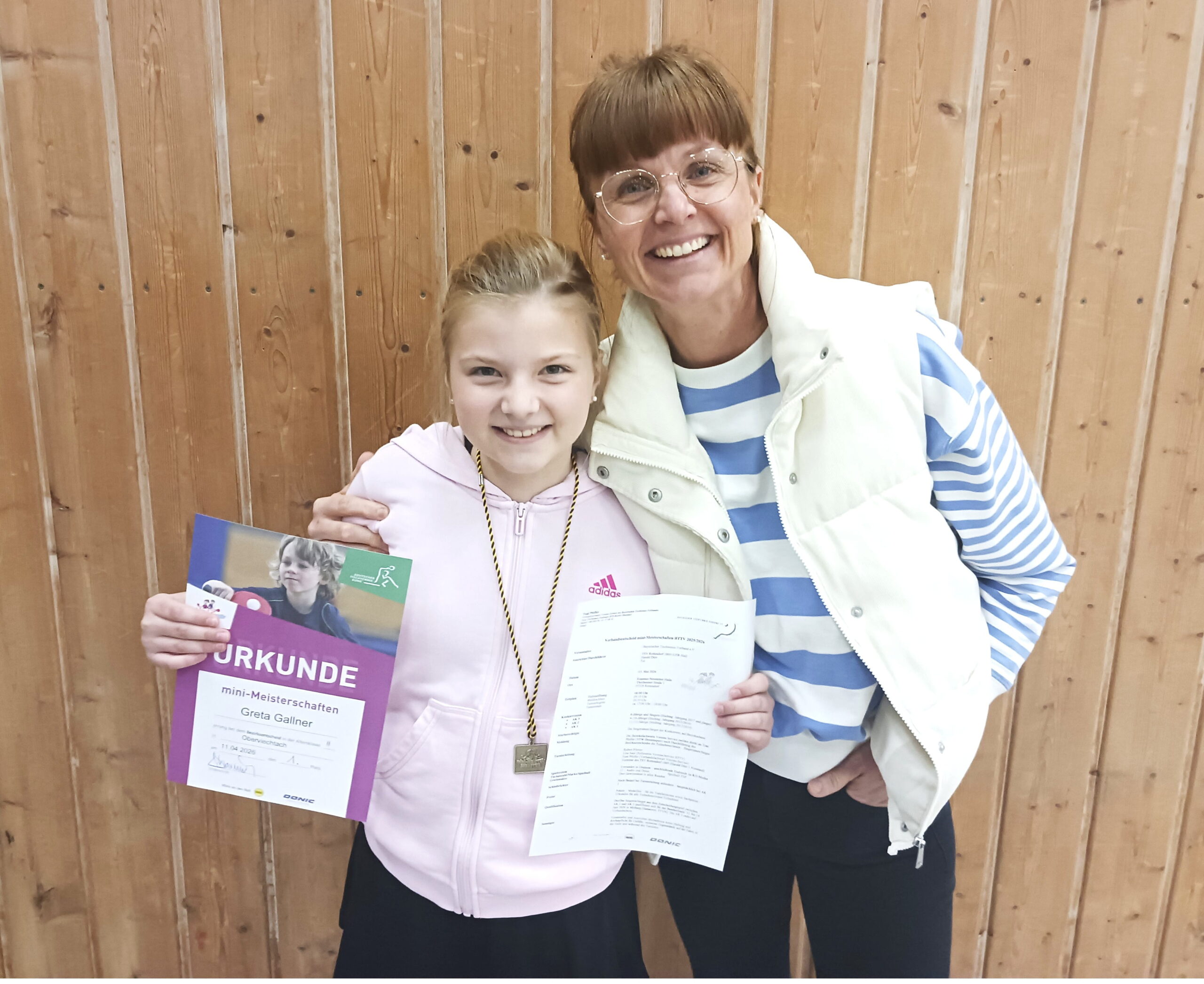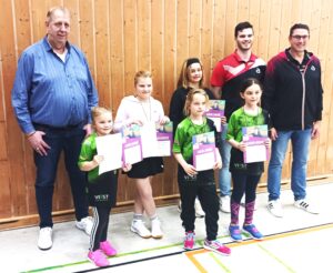Die Veranstaltung in Oberviechtach litt etwas unter der geringen Teilnahme von qualifizierten Kindern in allen drei Altersklassen. Bezirksfachwart für Jugend-Einzelsport Wolfgang Schanagel bemängelte, dass sich im gesamten Bezirk in den jeweiligen Ortsentscheide insgesamt 52 Jungen und Mädchen für den Bezirksentscheid qualifiziert hätten, jedoch fanden nur 21 den Weg in die Mehrzweckhalle der Doktor-Eisenbarth-Grundschule. Scharnagel wies bei seiner Begrüßung weiter darauf hin, dass bei diesem Turnier nur auf zwei Gewinnsätze gespielt wird und das er auf die Einhaltung des Verbandes achten wird, dass sämtliche Spiele „ohne Coaching“ abzulaufen haben. Auch bei den Mädchen war das Teilnehmerfeld überschaubar. Insgesamt spielten lediglich fünf Mädchen um den Gesamtsieg und zugleich um die Qualifikation für den Verbandsentscheid am 3. Mai. Greta Gallner war durch Klaus Baierl und Hans Apfelbacher bestens für das Finalturnier auf Bezirksebene vorbereitet. Mit konzentrierten Aufschlägen, sicheren Unterschnittbällen und immer wieder sehr schönen Topspin-Angriffen zeigte sie schnell, dass sie unbedingt gewinnen will. In der Spielrunde „Jede gegen Jede“ überzeugte sie mit vier klaren Einzelsiegen. Alle Spiele endeten jeweils mit 2:0 Sätzen und dabei musste sie lediglich einmal in die Satzverlängerung, aber auch hier behielt sie die Ruhe und siegte 12:10. Freudestrahlend, stolz und glücklich nahm Regina Gallner nach dem Turniersieg in die Arme. In Rottendorf wartet mit Sicherheit ein komplettes Teilnehmerfeld mit einem deutlich höheren Leistungsniveau auf Greta. Bis dahin heißt es also „mit Spaß, Freude und Konzentration“ weiter zu trainieren.