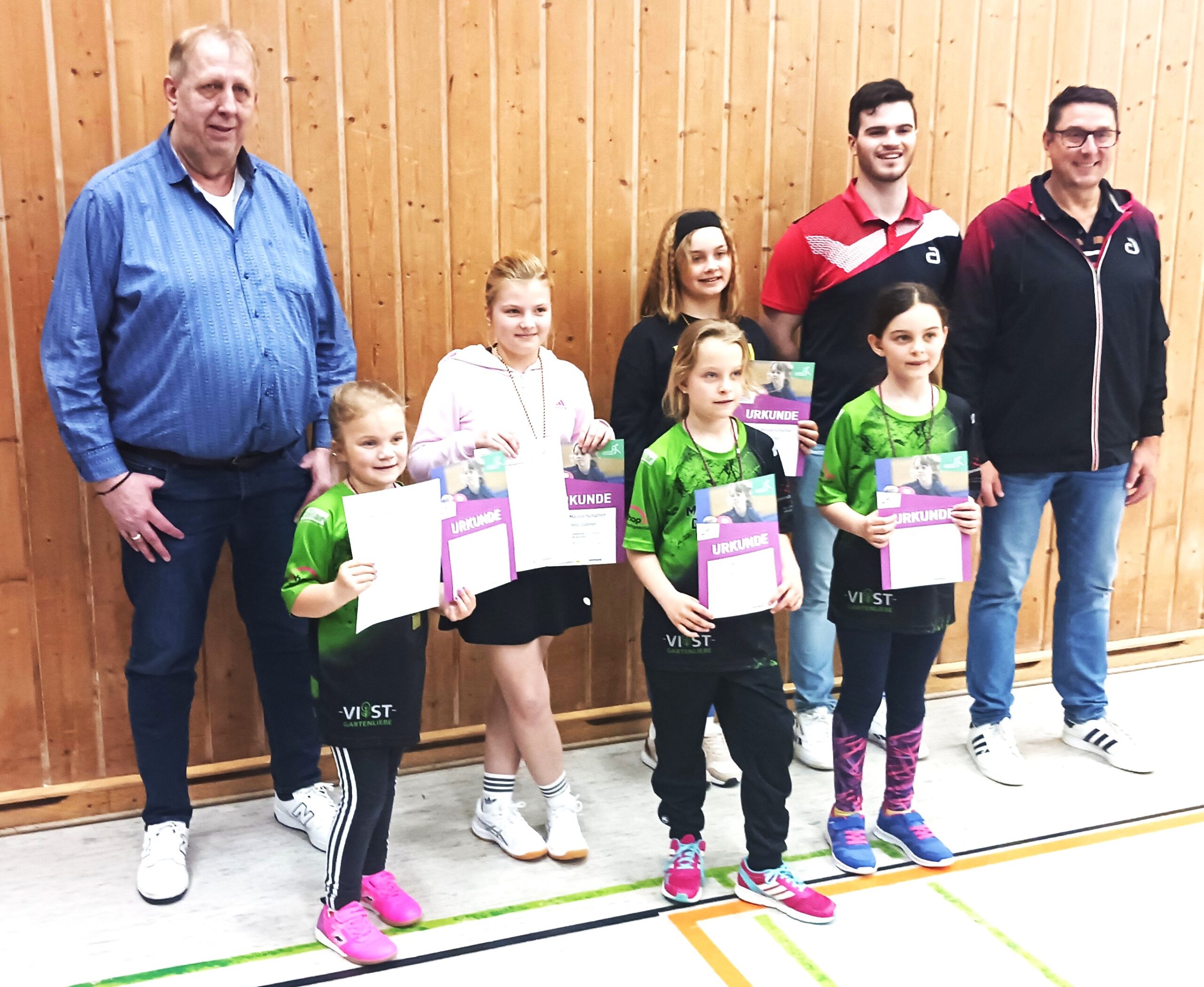Spielleiter Wolfgang Scharnagel und Abteilungsleiter Michael Eckl (OVI) mit den Siegerinnen